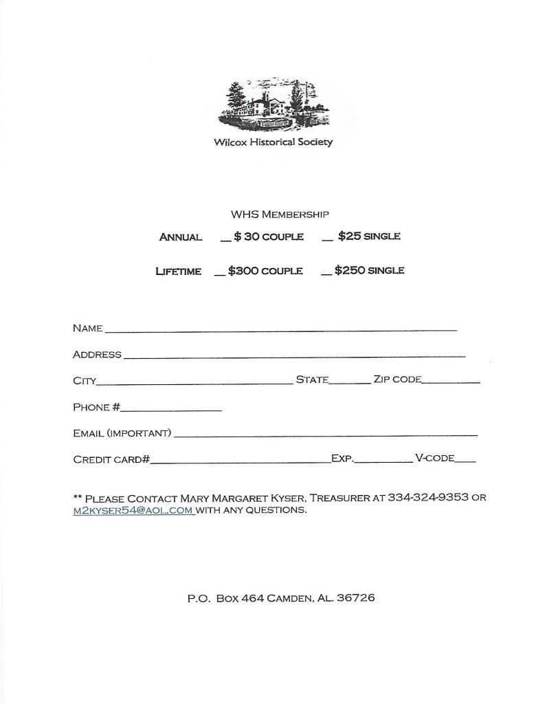 My name is Almalene (Alma) Higginbotham Cornwell and I live in Crandall, Texas. In 1992, with the help of Mrs. Connie Hines of Camden, Alabama, we located the family cemetery of Blackley and Mary Polly Fisher Higginbotham on land belonging to Mr. Henderson, near Millers Ferry in Wilcox County. Family members made several trips to the area and met so many wonderful people while reclaiming the cemetery. A lady from your historical society came out and asked us to contact the society to get it registered as a historical site. Sadly, I did not follow up. I do not have her name with me at this time, but I have it somewhere and I have her picture at the cemetery. We did go to the County Commissioners office and had the cemetery added to the official county map. We had an iron fence put around the plot by a local contractor in Camden, and repaired the stones (incorrectly we later found out). One stone is in remarkable condition. I have a plot of the burials and placement and size of the cemetery and many photos of before, during and after. What none of us considered at the time was that we would get old and be unable to come yearly and care for the cemetery. It has now been several years there are just a few of us left. I do not know what shape the cemetery is now in. Would the Wilcox Historical Society be interested in obtaining a historical designation for the cemetery. We also cleaned the Dulaney Family Cemetery when we were in Camden.
