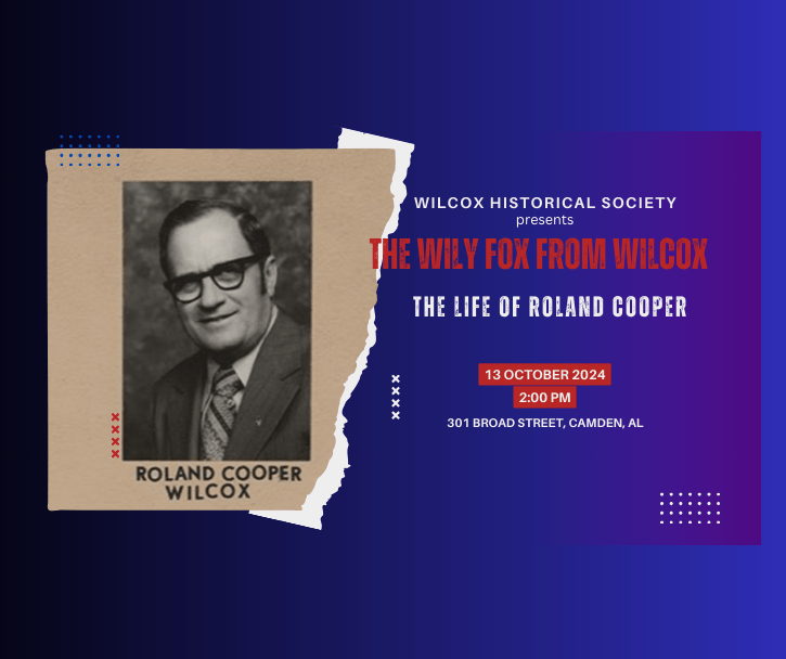 Come join us at our next meeting on Sunday, October 13 at 2pm and hear more about Roland Cooper from our guest speaker (and Cooper’s grandson), Roland Cooper Shattuck of Tuscaloosa. Cooper Shattuck is a practicing attorney and principal of Cartography Consulting, LLC.
